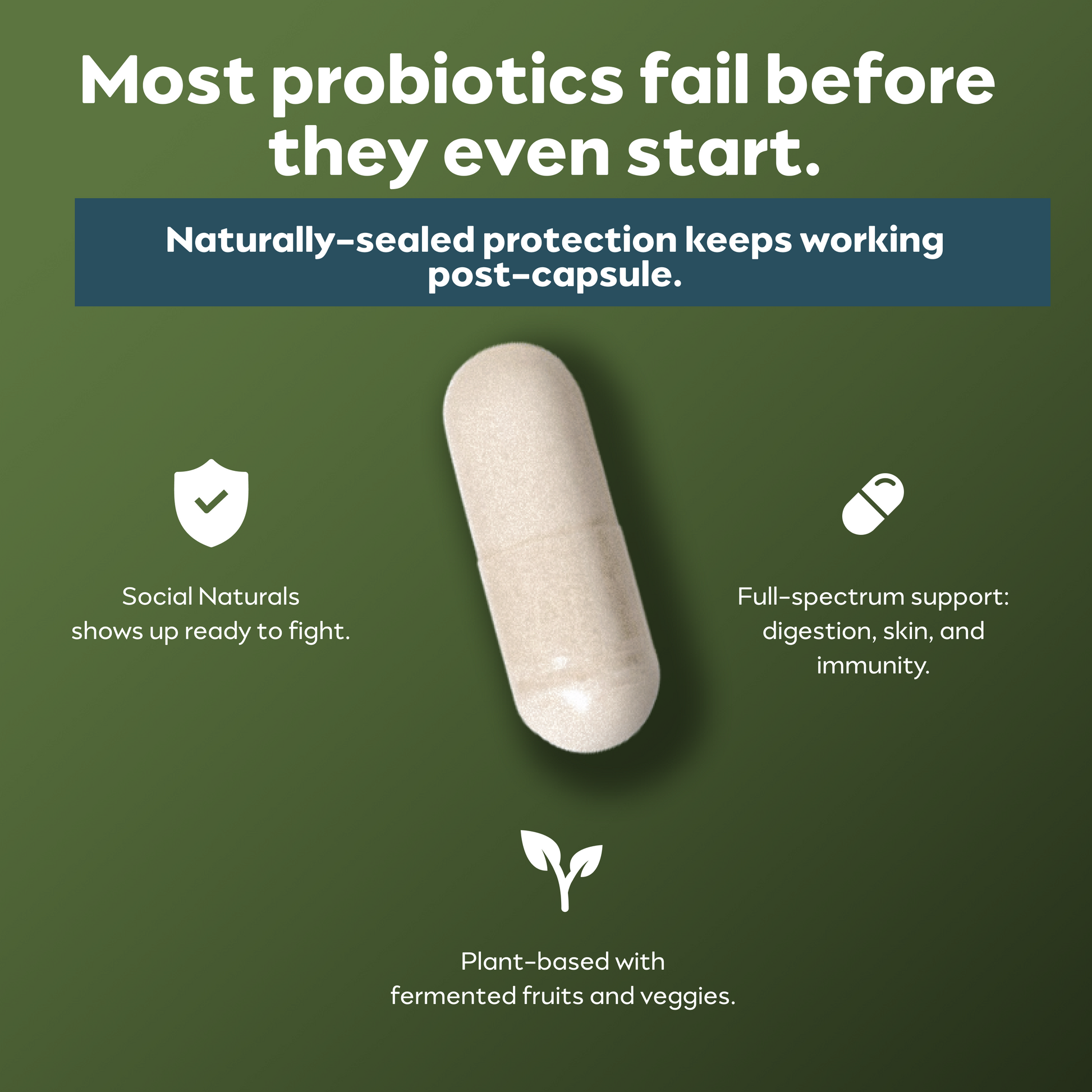 Most probiotics don’t survive the trip. Ours do—alive, ready, and where your gut needs them.