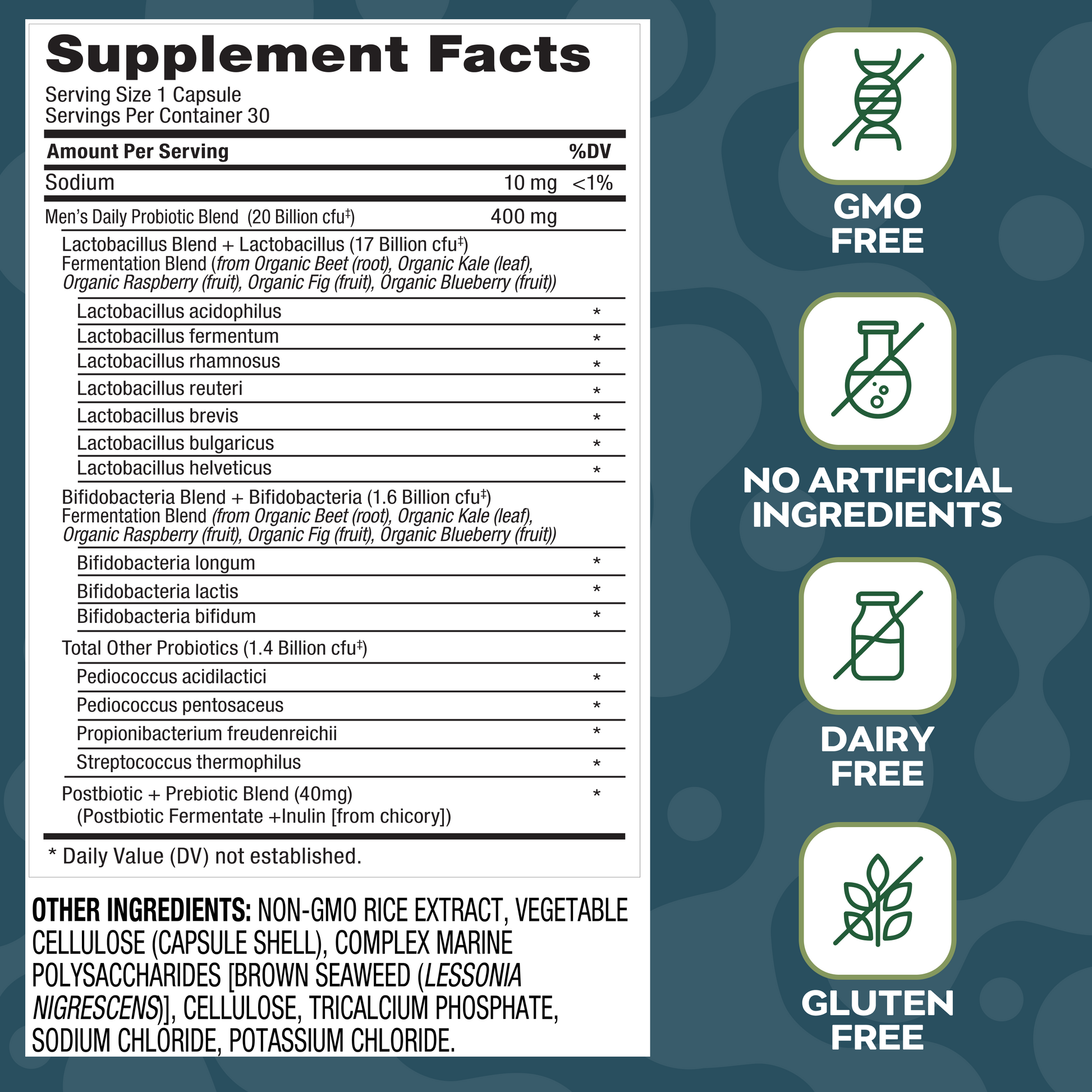 Men's Probiotic Capsules do not require refrigeration. Our shelf-stable formula maintains potency without the fridge. Just store it in a cool, dry place.